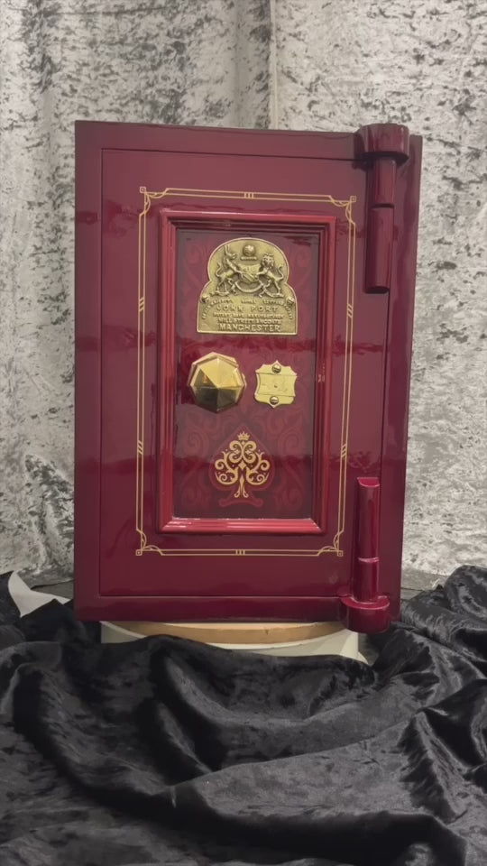John Port safes are very well built, they are solid and heavy for their size. This one has a lovely brass plaque, and door molding/trim which makes the safe stand out. This safe was originally red, so we thought we would design this one based on its original colour.